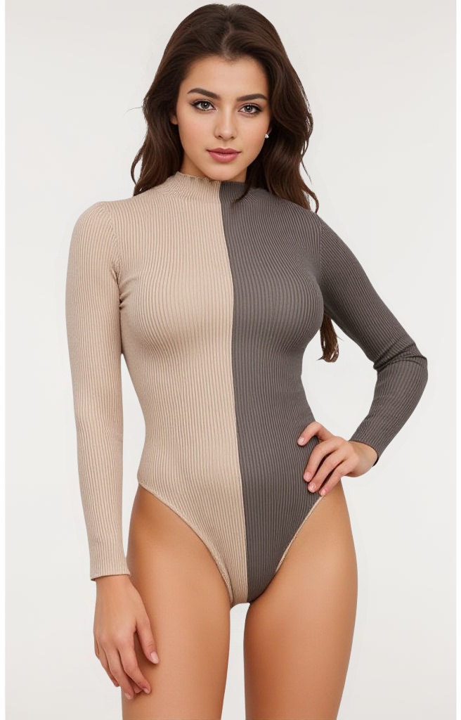 Two-tone high neck knitted bodysuit